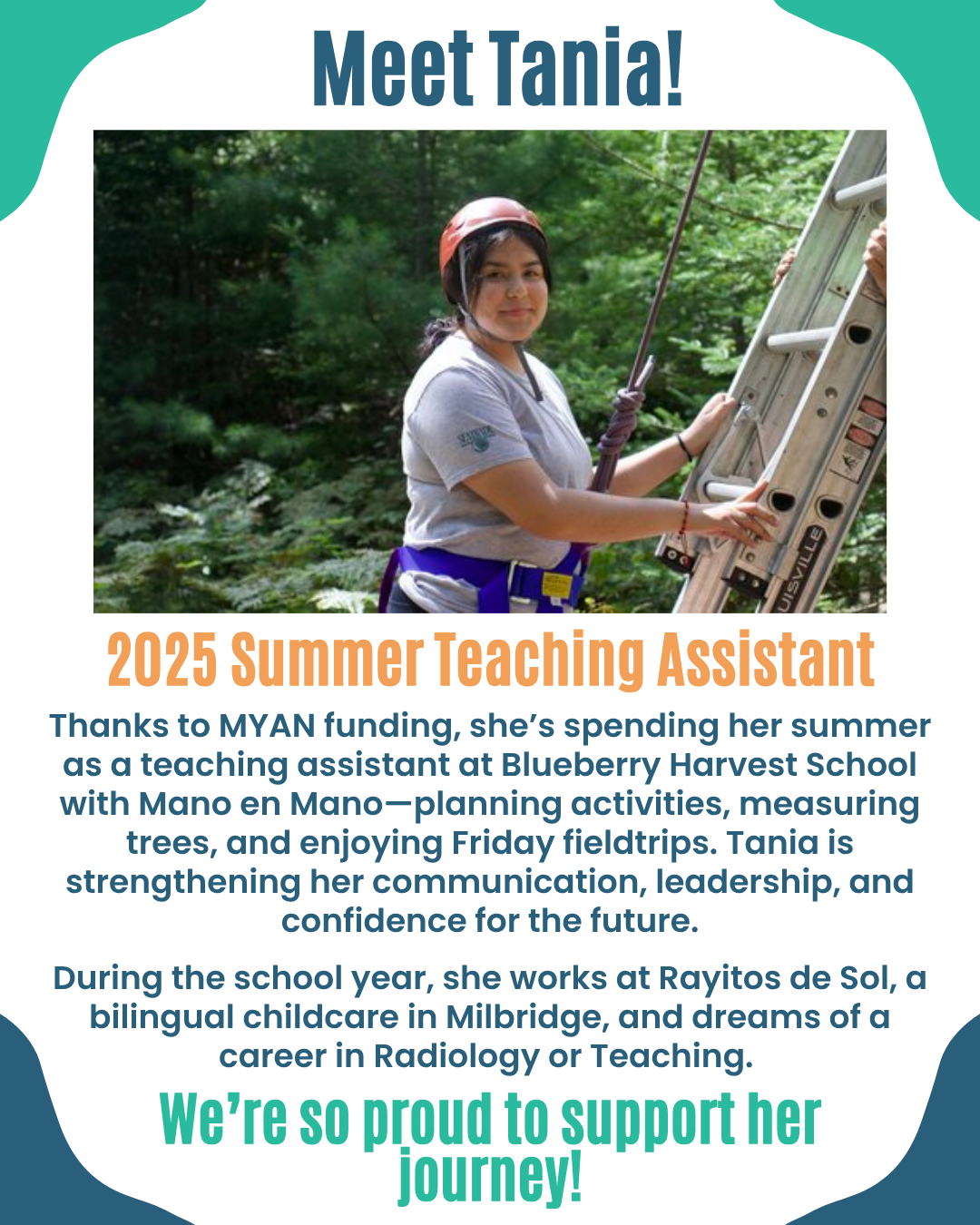Leadership comes in many different forms. Across Maine, young people are leading today and challenging us to build a better tomorrow. Although there are many youth and young adult leaders taking action in their communities, the MYAN team is excited to spotlight a few special leaders this fall starting with student teacher Tania. Learn more about how Tania is making a difference in her community below and send your nomination for future spotlights here!